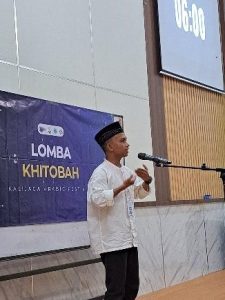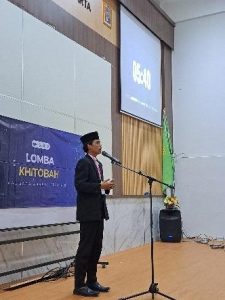 Pada kategori kedua, yaitu Perlombaan Khitobah yang diadakan pada Jumat, 11 Oktober 2024, dua mahasiswa dari  semester 5 Program Studi Pendidikan Bahasa Arab, yaitu Muhammad Rivaldy dan Fiter Hafizon, turut berpartisipasi dalam perlombaan ini. Mereka membawakan tema “Eksistensi Bahasa Arab di Era Globalisasi”. Dalam perlombaan tersebut, setiap peserta diberikan waktu tampil maksimal 7 menit. Kegiatan ini diikuti oleh 37 peserta dari kalangan pelajar dan mahasiswa tingkat nasional, sehingga persaingan berlangsung dengan ketat dan penuh antusiasme.