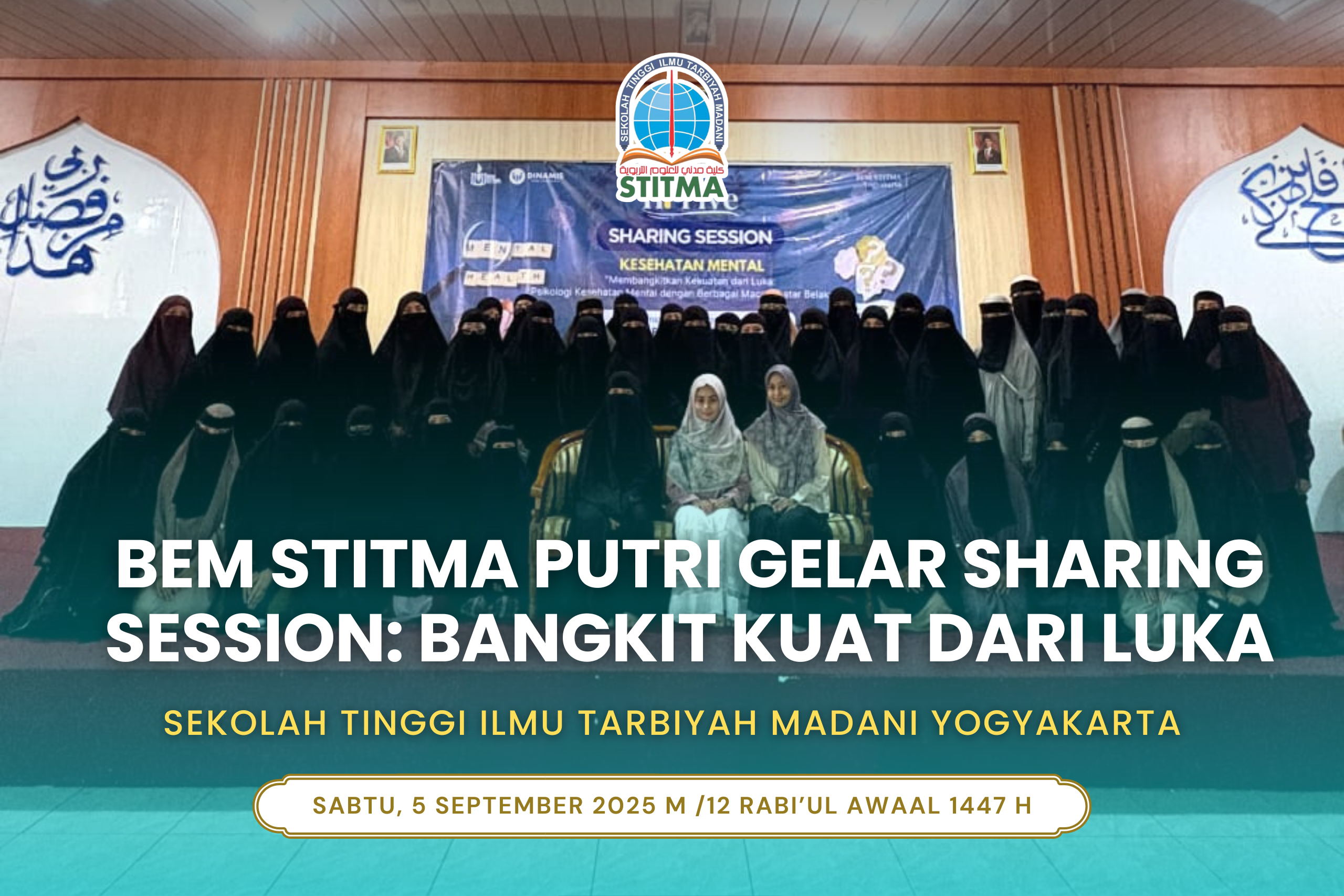 Badan Eksekutif Mahasiswi (BEM) STIT Madani Putri kembali menghadirkan program bermanfaat untuk mendukung pengembangan diri mahasiswi. Kali ini, BEM STIT Madani Putri melalui Divisi Komunikasi, Media, dan Informasi bekerja sama dengan Dinamis Biro Psikologi menyelenggarakan acara bertajuk “Sharing Session: Kesehatan Mental” dengan tema “Membangkitkan Kekuatan dari Luka: Psikologi Kesehatan Mental dengan Berbagai Macam Latar Belakang”.
