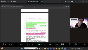 Selain pemaparan materi, kegiatan juga diisi dengan sesi diskusi interaktif yang memberikan kesempatan bagi mahasiswa untuk menyampaikan pertanyaan dan kendala yang sering dihadapi dalam proses penyusunan tugas akhir.