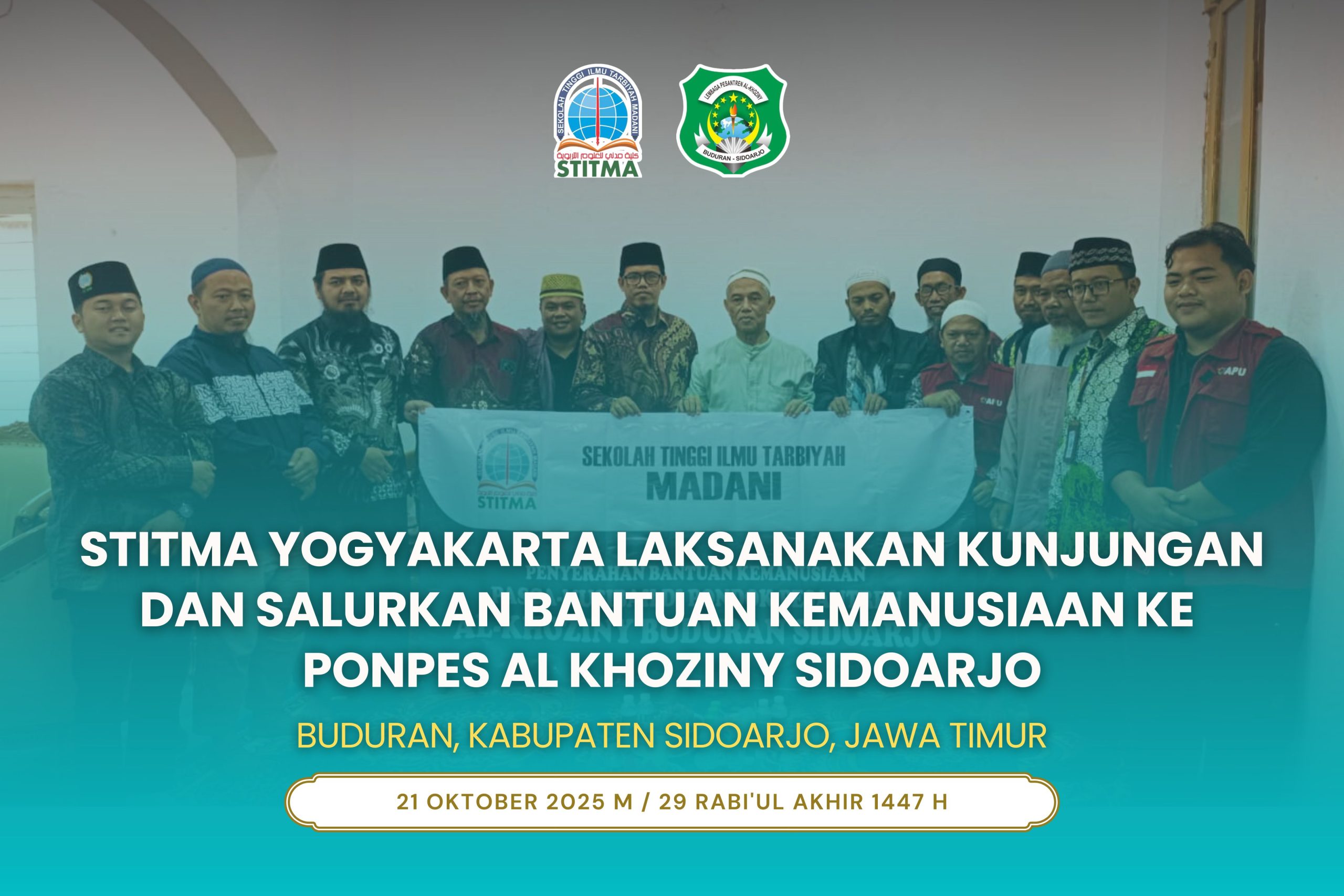 Sidoarjo, 21 Oktober 2025 — Dalam rangka menumbuhkan semangat kepedulian dan solidaritas sosial di kalangan civitas akademika, Sekolah Tinggi Ilmu Tarbiyah Madani (STITMA) Yogyakarta menyalurkan bantuan kemanusiaan ke Pondok Pesantren Al Khoziny, yang berlokasi di Buduran, Kabupaten Sidoarjo, Jawa Timur, pada hari ini, Selasa (21/10) pukul 09.00 WIB.
