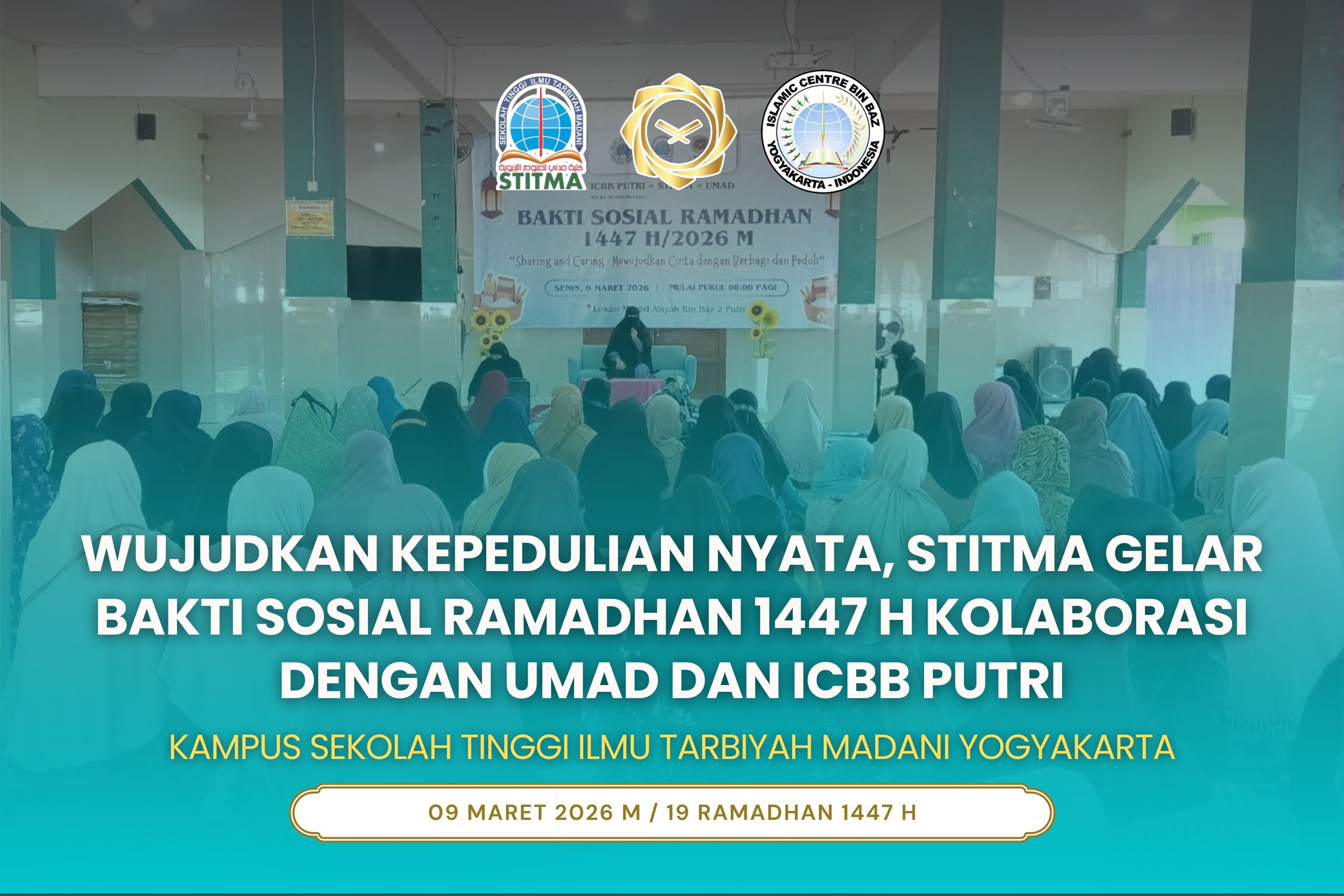 YOGYAKARTA – Semangat berbagi di bulan suci Ramadhan kembali terpancar melalui kolaborasi lintas lembaga pendidikan di bawah naungan Yayasan Majelis At-Turots Al-Islamy. Pada Senin, 9 Maret 2026, unit ICBB Putri, STITMA, dan UMAD sukses menyelenggarakan kegiatan Bakti Sosial Ramadhan 1447 H yang bertempat di Kompleks Masjid Aisyah Bin Baz 2 Putri.